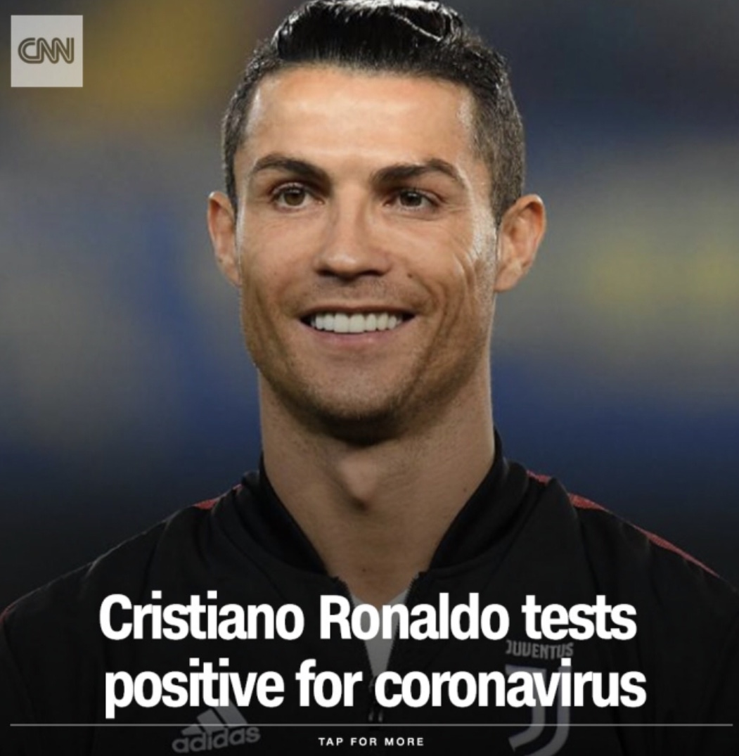 CNN : คริสเตียโน โรนัลโดกล่าวในแถลงการณ์เมื่อวันอังคารที่ 13 ตุลาคม2563ว่าเค้าได้ทดสอบ covid-19 และผลออกมาเป็นบวก เค้าเป็นนักฟุตบอลในสหพันธ์ฟุตบอลโปรตุเกส